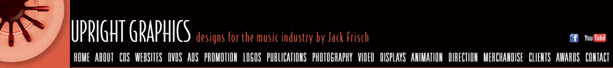 Jack Frisch's Upright Graphics has been providing award winning CD packages, web sites, print advertising, press kits, photography and merchandise designs for independent artists and record labels in the International music industry since 1997. With a specialization in the Jazz genre, Upright has designed and photographed over 150 CDs and numerous web sites in the genre. In 2001, Jack received a Grammy Certificate in Recognition of participation as the Art Director on the 2001 Grammy Award winning Marcus Miller recording "M2 (pronounced M squared) in the category Best Contemporary Jazz Album of the Year. In September 2005 Upright Graphics was nominated for a Alex Award for Best Jazz CD package of the Year. Upright can meet all of your project's needs including concept, design, copy writing and more. Feel free to contact us with any questions regarding designs and rates. Copyright 2023 Upright Graphics-Jack Frisch |